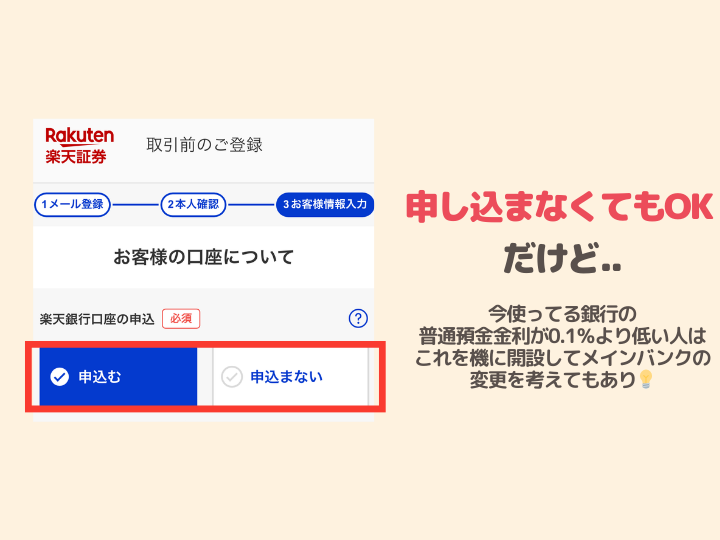 ❾楽天銀行を一緒に開設を申し込むかどうか自由に選択