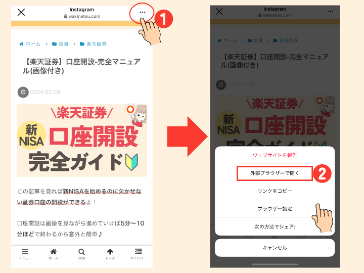 インスタから開いたまま操作を進めると、画面を閉じた時に始めからやり直しになっちゃうから気を付けてね(泣)