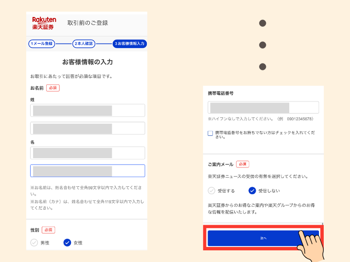 ❻自身の情報を入力後、「次へ」をタップ
