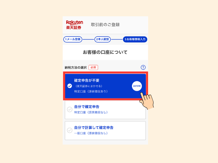 ❼納税方法は「確定申告が不要」な特定口座(源泉徴収あり)を選択する