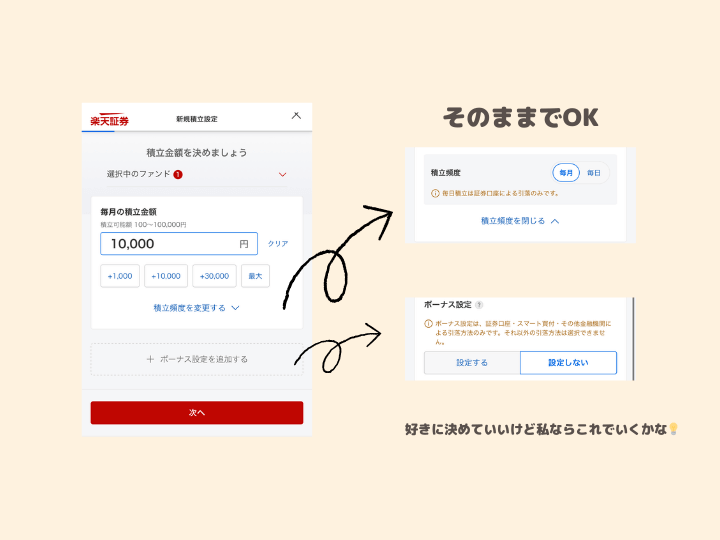 ④積立金額を入力。積立頻度とボーナス設定はそのままでOK